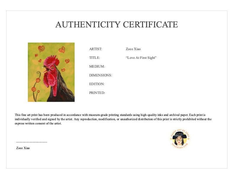"LOVE AT FIRST SIGHT", limited edition fine art prints from Zoee Xiao Artworks. This fine art print has been produced in accordance with museum-grade printing standards using high-quality inks and archival paper/canvas. Each print is individually verified and signed by the artist, comes with its own authenticity certificate.